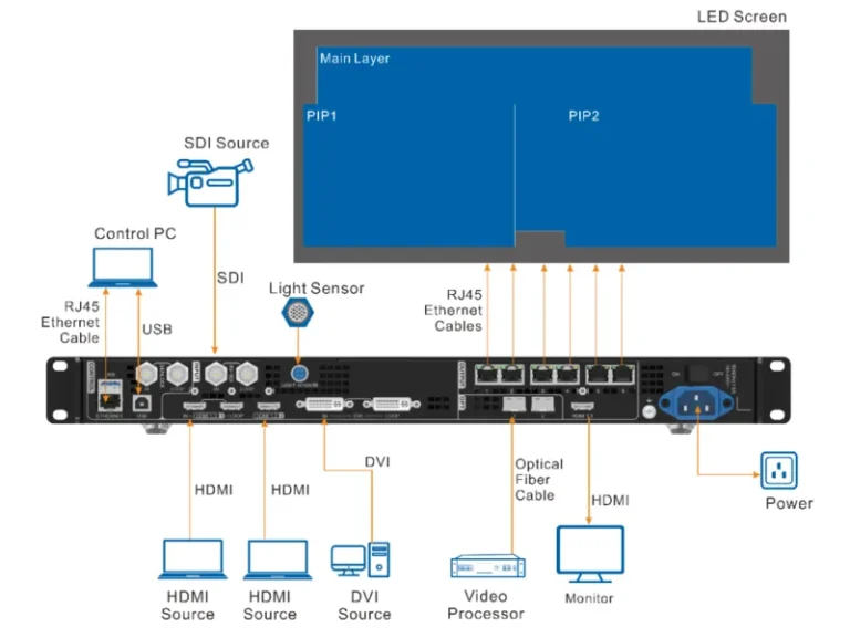 What’s more, the VX600 can work with NovaStar’s supreme software NovaLCT and V-Can to greatly facilitate your infield operations and control, such as screen configuration, Ethernet port backup settings, layer management, preset