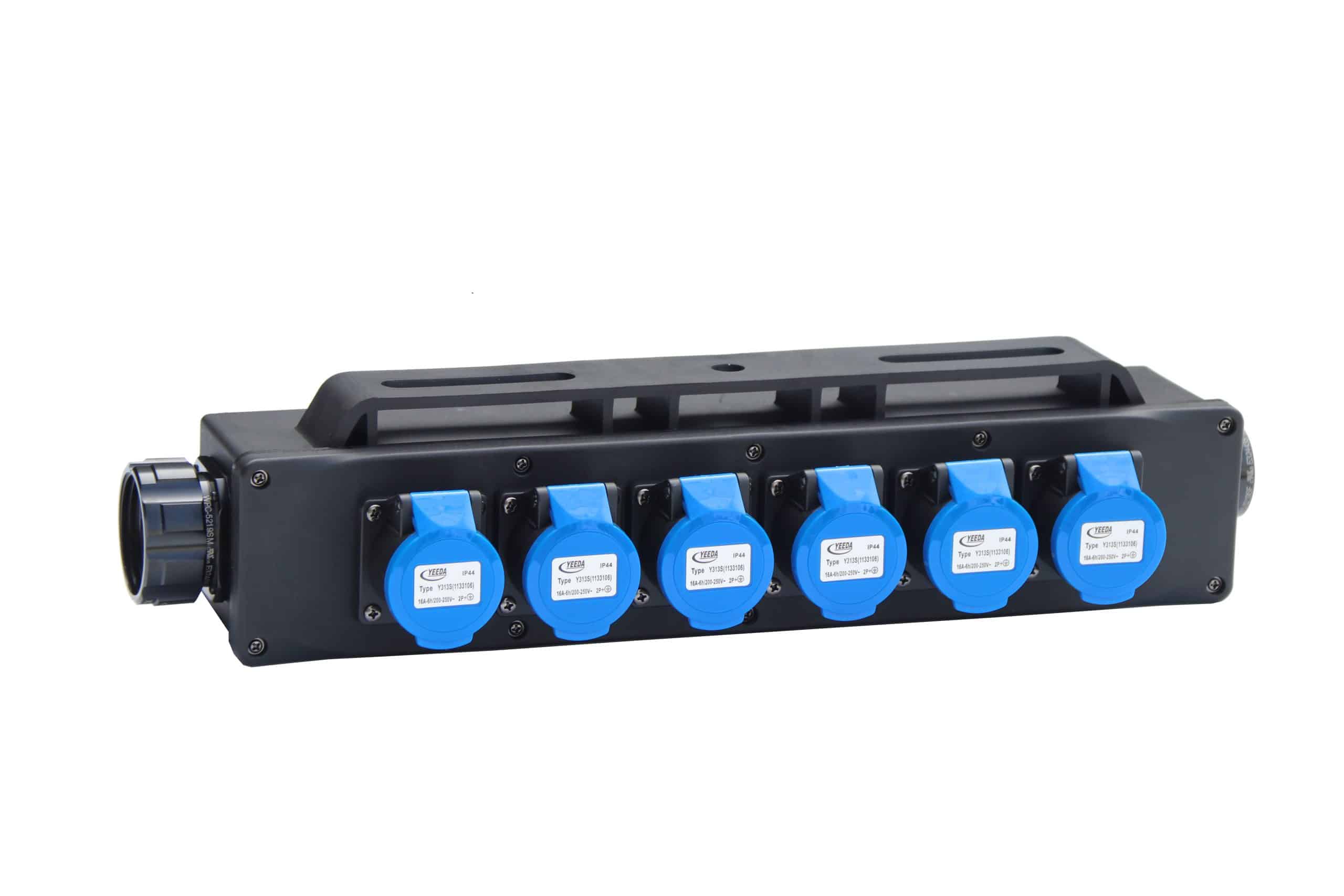 Etiketler: 19 pin Socapex kutu, 6 CEE16 A çıkış, dayanıklı malzeme, endüstriyel güç dağıtımı, güç kablosu aksesuarı