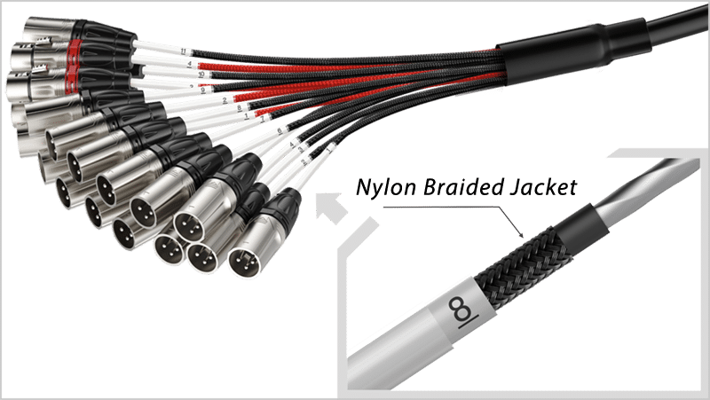 - Professional audio stage box,assembled with TCC series multicore audio cables(0,14mm²,100% shielding), flying cable covered with black(Inputs) and red(Outputs) PVC sleeving