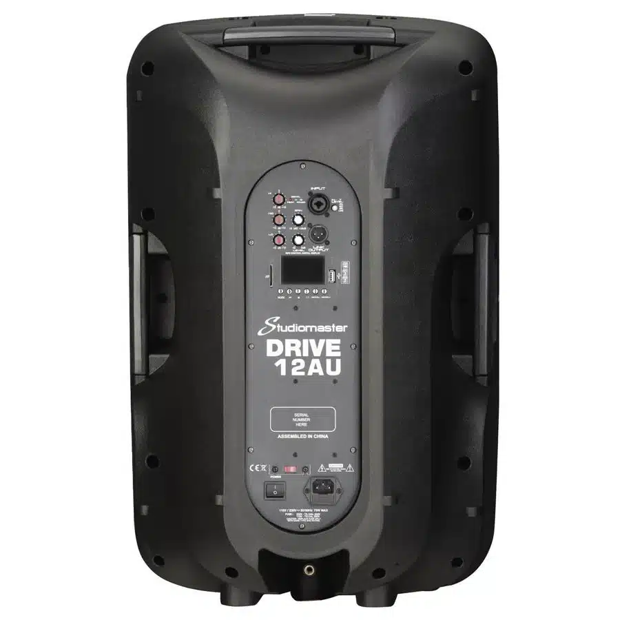 The DRIVE12AU features a built in media player, 3 band EQ, mic/line input connections on XLR and Jack, gain and level controls and a link facility to connect through to multiple cabinets from one signal source. The new Class D amplifiers in these models has been designed to deliver high power and a clean sound at all power levels.