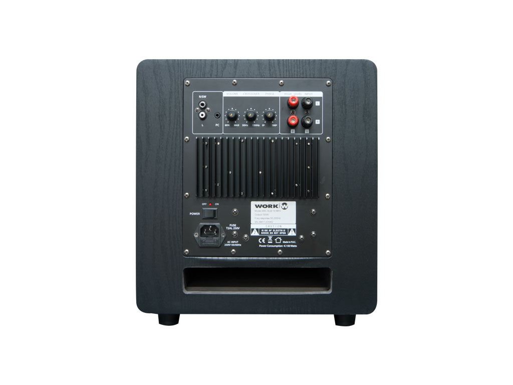 ARC SUB 10 MKII is a self-powered subwoofer integrating a 150 W power amplifier and a high-performance 10″ woofer. The amplifier is equipped with several controls, allowing you to configure parameters such as output gain, crossover frequency or phase inversion. ARC SUB 10 MKII features 2 input types: LINE full-range input (RCA L-R and stereo mini-jack) and High Level stereo input for direct connection between external amplifiers and the satellite system. Their robust design, elegant finish (in high-density wood) and their shape, they are very suitable in reinforcement systems such as conference rooms, schools or home cinema installations.