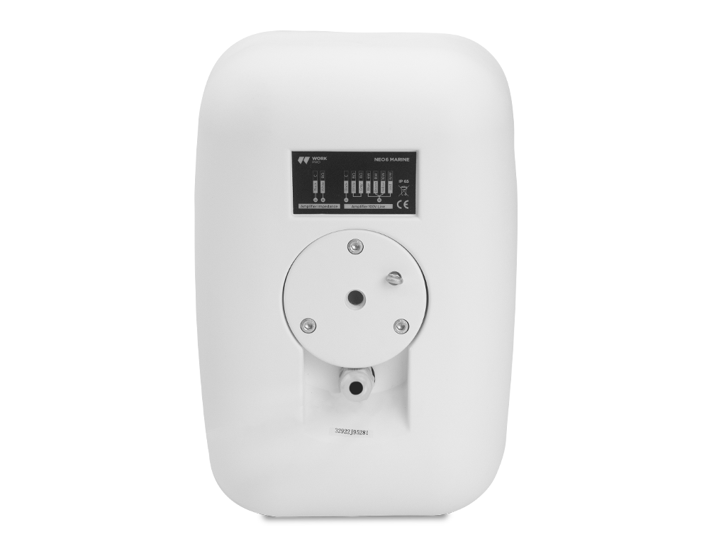Installation LoudspeakersNEO 6 MARINE is a 2-way acoustic box made of ABS plastic and white, specially designed for outdoor installation with a degree of protection IP 65. It special hydrophobic make suitable to install in ships or places near beaches. It is composed of a 6.5 “speaker and a tweeter of 1”. It can be used both in 70/100 V installations and in low impedance installations. When a speaker is connected at low impedance the audio does not pass through the transformer in order to maintain a high level of quality. NEO 6 MARINE is also very simple and quick to install, thanks to the new bracket designed exclusively for this model, which also allows a quick orientation of the box on both axes. Sold in pairs (two passive boxes).