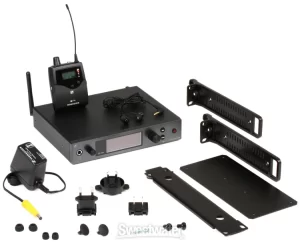 - Consisting of UHF bodypack receiver (EK IEM G4), 9.5″ transmitter (SR IEM G4) and IE4 earphones