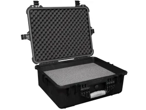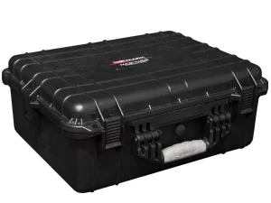 ABS case. Inner protective foam. IP 67. Internal 468 x 193 x 355 mm. Black colour.