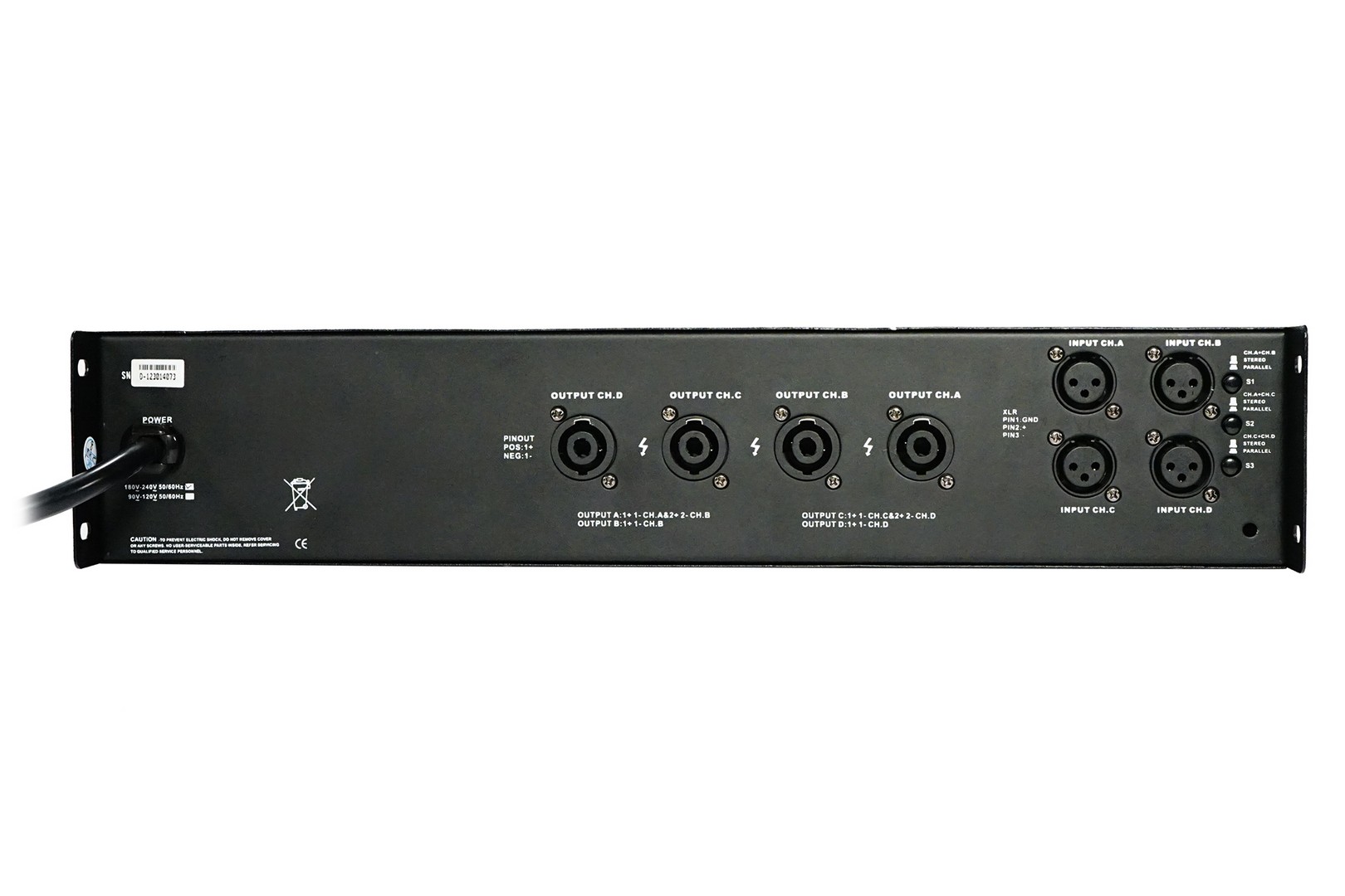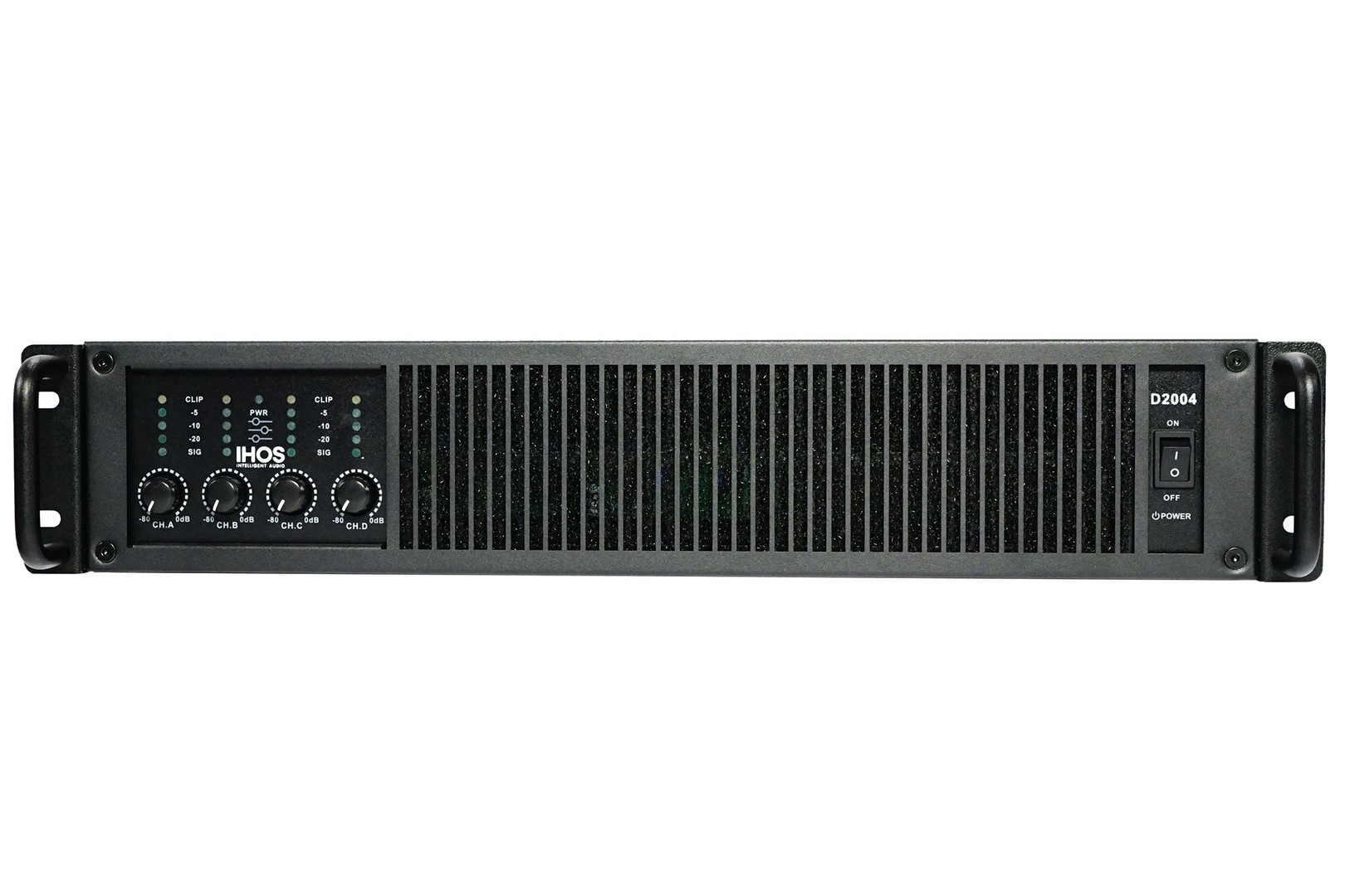 D2004 4ch Power Amplifier, güçlü ses performansı ve sağlam yapısıyla profesyonel ses sistemlerinde güvenle kullanılabilir.