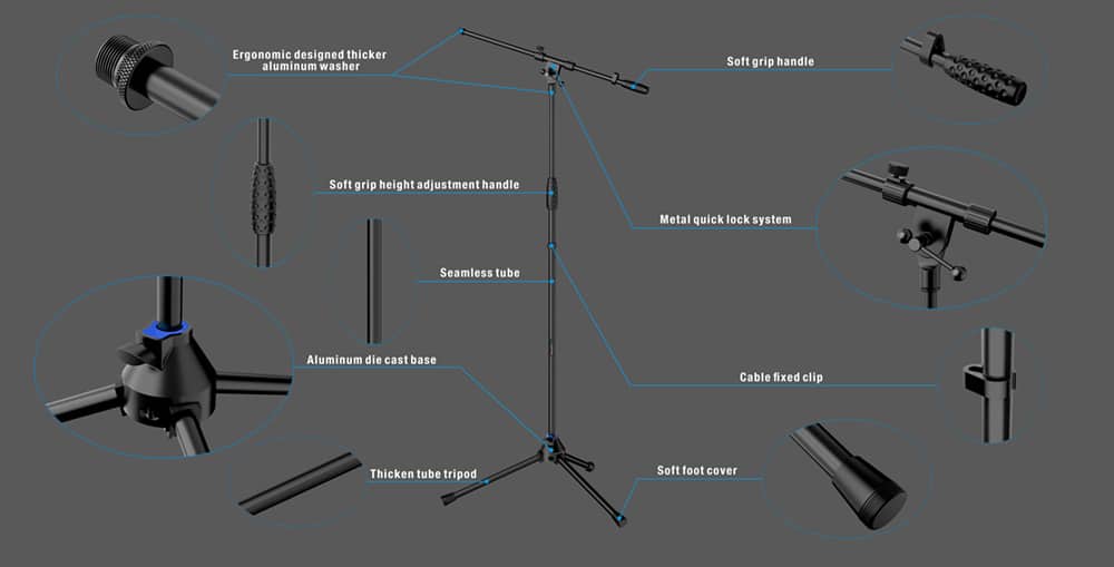 Etiketler: ayarlanabilir mikrofon standı, boom mikrofon standı, hafif mikrofon standı, profesyonel ses ekipmanı, stüdyo mikrofon aksesuarı